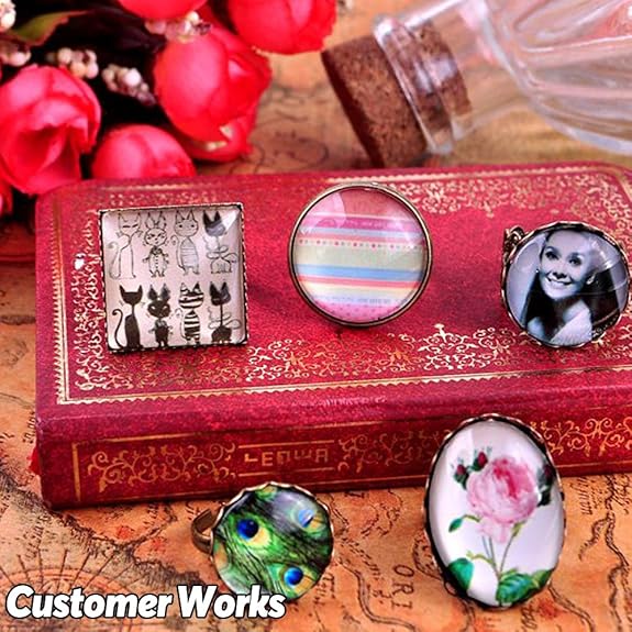 Maxxlite 64-Pieces Pendant Set, 16Pcs Oval Pendant Trays and 16Pcs Round Bezels with 32Pcs Glass Cabochon Round Clear Dome Tiles for Crafting DIY Jewelry Making