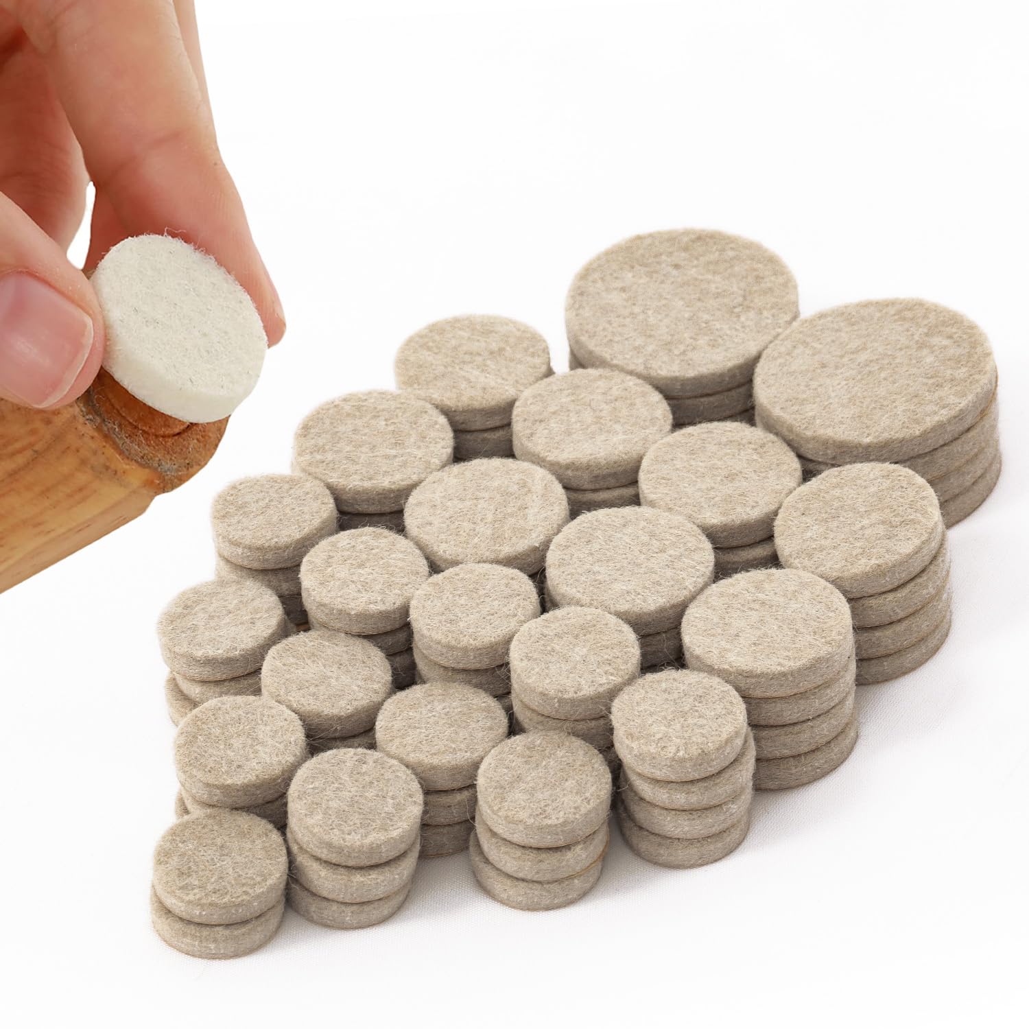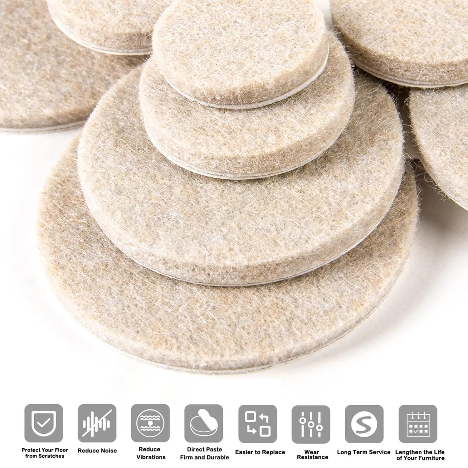 - THREE sizes for furniture of all sizes. 3/4” (19mm), 1” (25mm) and 1.5” (38mm) round felt pads. Total 80 Pcs.