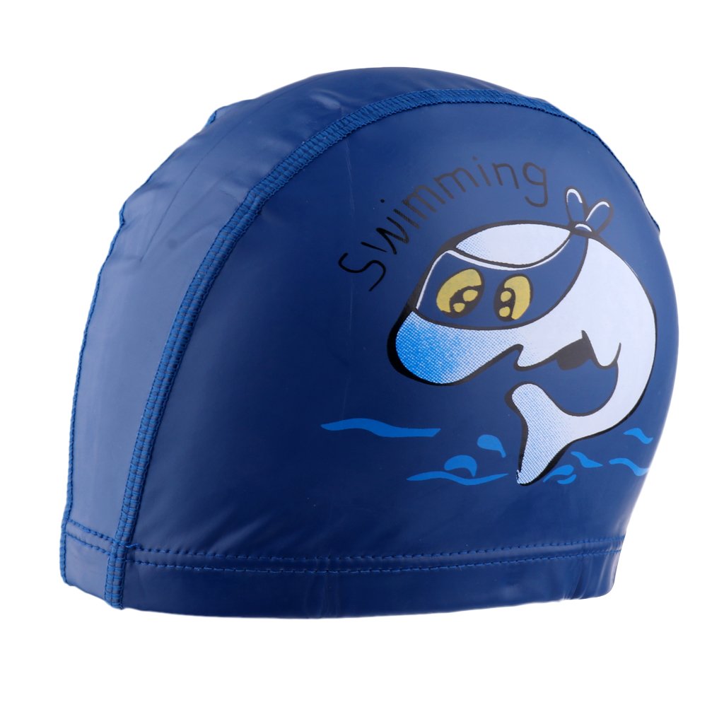 Maxxlite Children's Kids Waterproof Cartoon Dolphin Swimming Swim Cap Ear Protection - dark blue