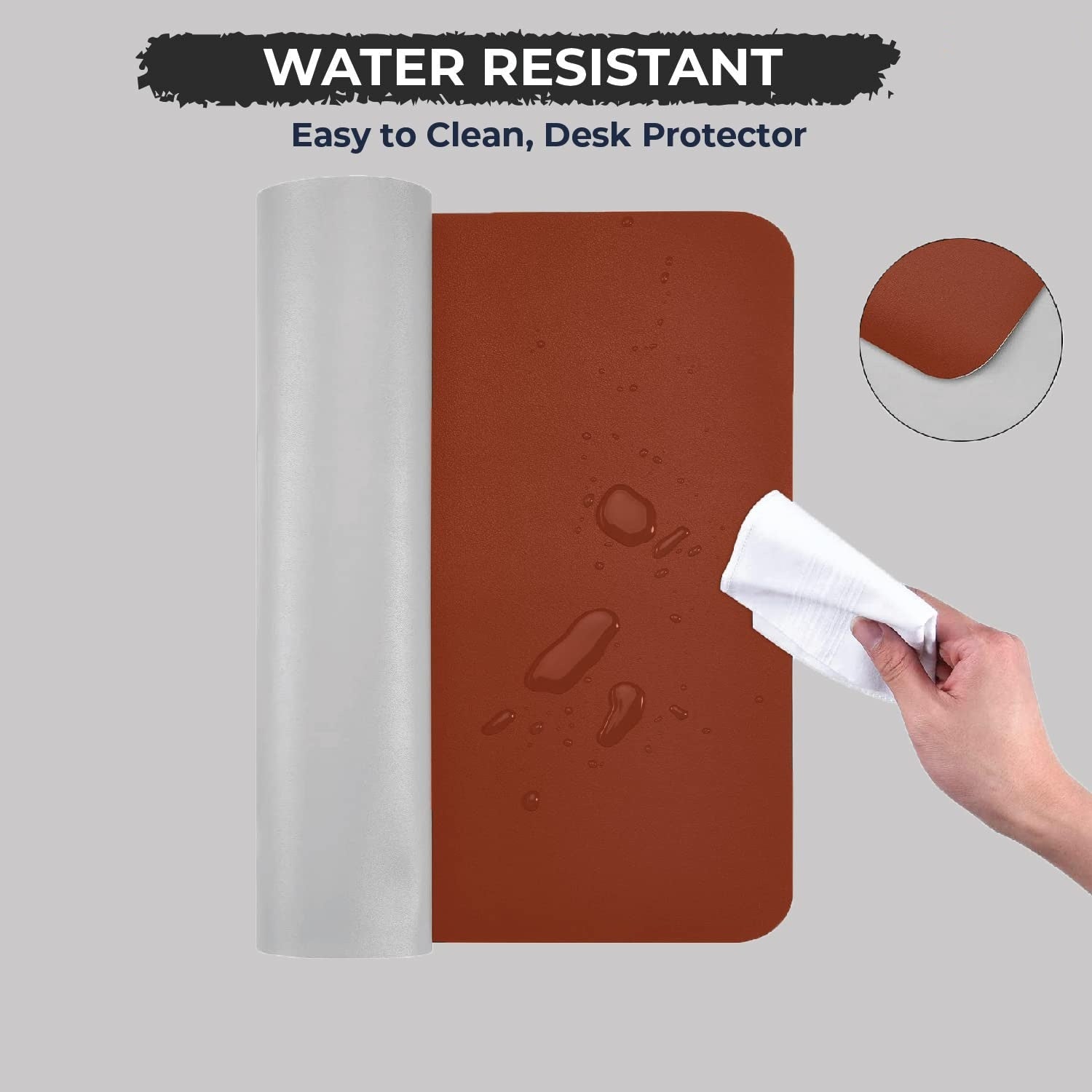 - Large Desk Pad: Our mouse pad large is 90cmx45cm long and is large enough to cover full office table. The edges of this computer pad is smoothly finished to prevent wear and tear. It is stitched with soft leather at top surface so, it is firm on table. This office desk mat is recommended for speed gaming control. The simple and elegant design of our leather desk mat also make it a wonderful desk accessory which is available in double colour variant.