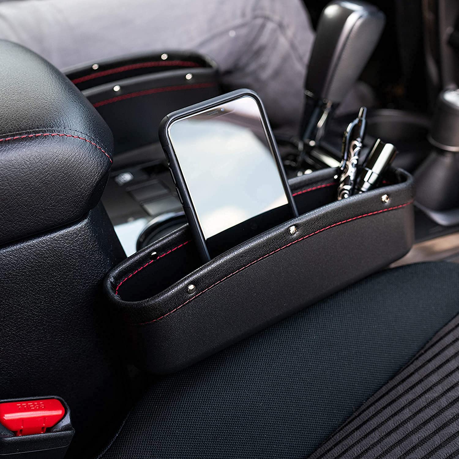 Maxxlite PU Leather Car Side Organizer Seat Gap Filler Catch Caddy Side Seat Pocket Console Storage Box Holder for Wallet, Mobile, Coins, Cards, Key Catcher (Black) 1PC